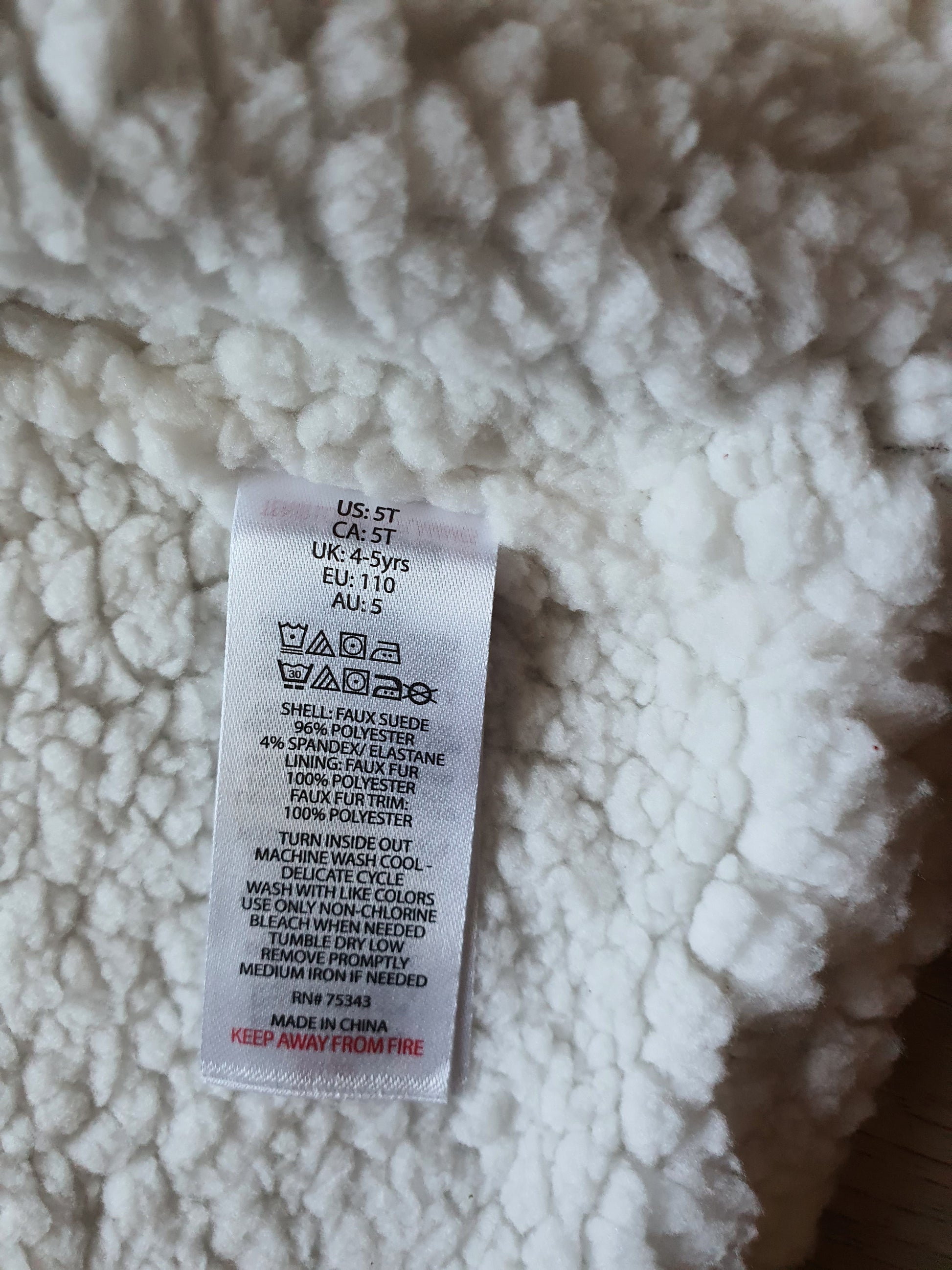 Keep your little one cozy and stylish with this toddler 5T faux shearling vest. Designed with a soft brown suede-look exterior and plush white fleece lining, this sleeveless vest is perfect for layering in cooler weather. Features a cute pom-pom tie closure for added charm. A versatile piece of toddler outerwear for everyday wear, school, or family outings.